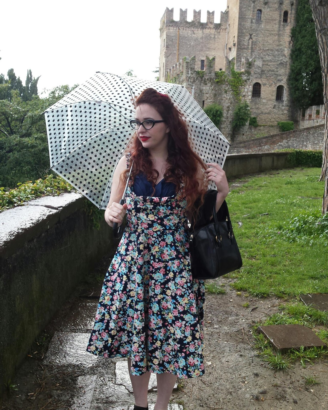 "Ophelia" Dark Blue Flower probabilmente al momento dell'acquisto ero quello che mi piaceva di meno ma una volta arrivato ha decisamente ribaltato il mio pensiero. Dal vivo è decisamente meno cupo e scuro rispetto alle immagini dal sito, molto più floreale e blu. Lo scollo a cuore e di trama/stoffa diversa dal resto dell'abito lo rende molto particolare, il taglio è bellissimo e calza perfettamente. Tra i quattro abiti è quello che ho indossato per primo, anche se è stato leggermente sfortunato perché si è beccato una giornata di pioggia a differenza delle previsioni!